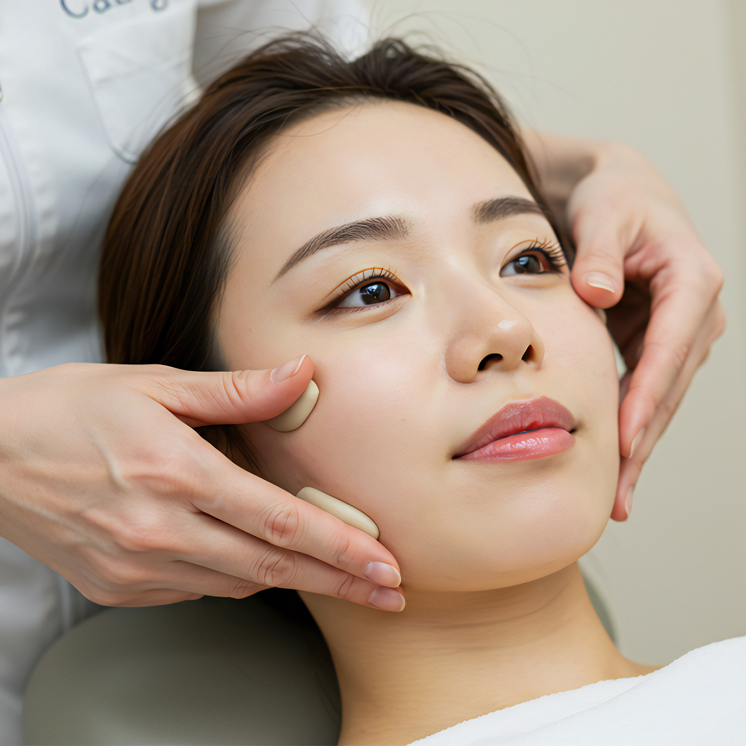 ・筋膜リリース…顔の筋膜の硬さをほぐし、血流・リンパ流を促進